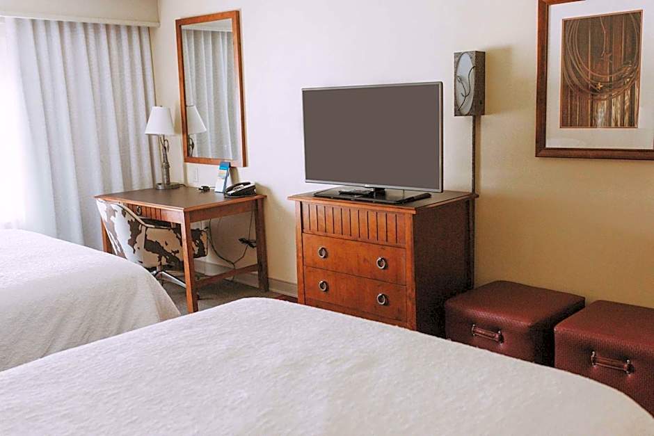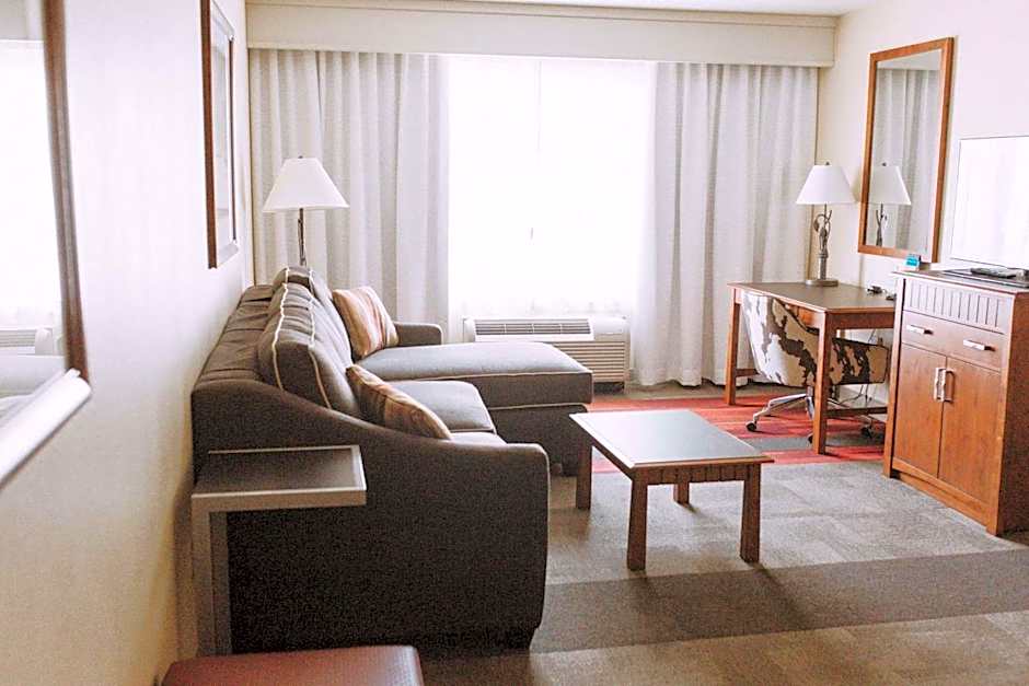 Whirlpool, sofa bed, two TVs, free WiFi, desk, easy chair with ottoman, coffeemaker, shower Stretch out in this two-room suite which features a bedroom with our clean and fresh Hampton king bed®, and a 32-inch TV, and a separate living area with a sofa bed, easy chair with ottoman, and a 42-inch TV. Catch up on work at the large desk, or surf the web with free WiFi access. Enjoy a relaxing soak in the whirlpool tub, and refresh in the bathroom which has a WaterPik showerhead and curved shower rod that allows more light and space in the shower.